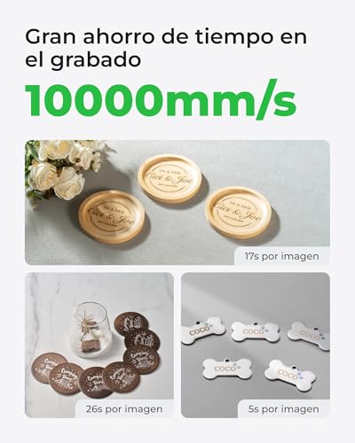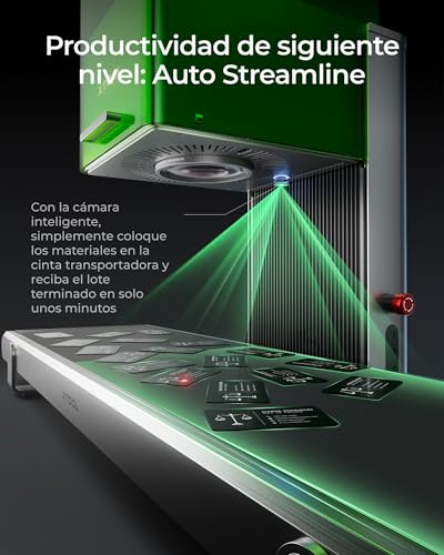 Productividad a Nivel de Fábrica: La producción automatizada exclusiva de xTool, alimentada por el transportador automático (disponible por separado) y un sistema de CÁMARA INTELIGENTE de 16MP, gestiona sin esfuerzo el grabado en lotes. Esta grabadora laser cortadora laser reconoce automáticamente las formas en el transportador, llena inteligentemente los patrones en cada pieza sin parar, y con su velocidad de 10,000 mm/s, completa lotes enteros en minutos.