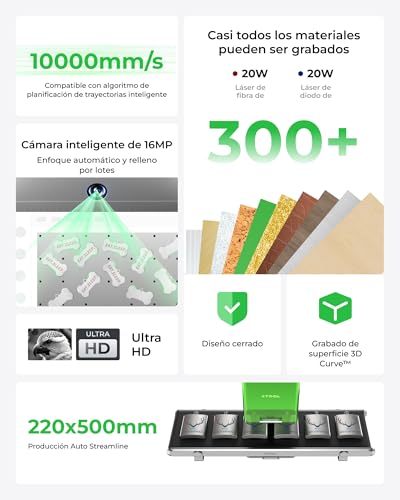 Especificaciones: xTool F1 Ultra Grabadora Láser Dual 20W Fibra & Diodo, 10000mm/s Grabadora Láser 3D Ultra Rápida y Cortadora Láser para Joyería, Metal, Madera, con Cámara Inteligente, Auto Streamline