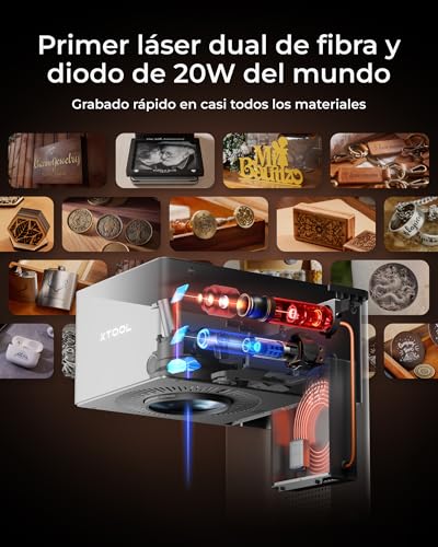 xTool F1 Ultra Grabadora Láser Dual 20W Fibra & Diodo, 10000mm/s Grabadora Láser 3D Ultra Rápida y Cortadora Láser para Joyería, Metal, Madera, con Cámara Inteligente, Auto Streamline