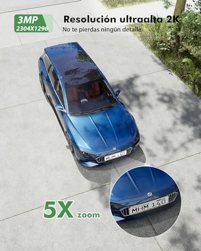 【2K QHD, 3MP & 100% inalámbrica】La cámara exterior solar ofrece una imagen QHD de 2K y una función de zoom digital de 5x, que está mucho más allá de lo que las cámaras exteriores 1080P. El 100% inalámbrico garantiza que no haya cables de red o cables de alimentación adicionales que puedan causar problemas. Simplemente conecte el panel solar y podrá usarlo 365 días al año