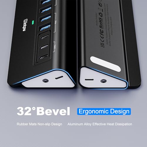 Diseño ergonómico: el concentrador de puerto USB de una sola pieza de aluminio tiene una forma triangular ergonómica única en ángulo de 32 grados y pies en la parte inferior para facilitar y desconectar dispositivos USB en el escritorio