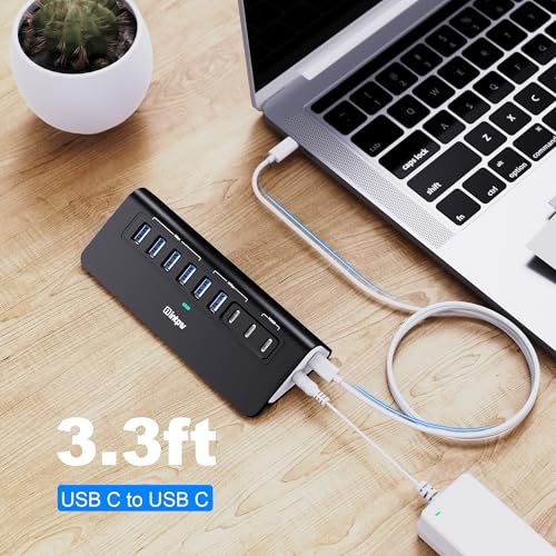 Especificaciones: YH6AC Hub USB alimentado de 10 Gbps, divisor USB de 9 puertos con USB A/USB C 3.2, 4 USB 3.0, 2 puertos de carga PD de 45 W, adaptador de corriente de 65 W y cable de 3.3 pies, concentrador
