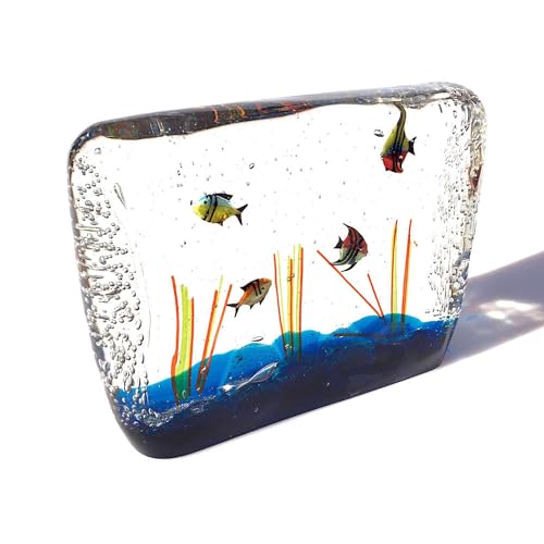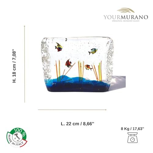 Especificaciones: YourMurano – Acuario de Cristal de Murano Forma Rectangular, Escultura Marina de Vidrio Soplado para Decoración del Hogar, Obra de Arte Made in Italy