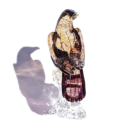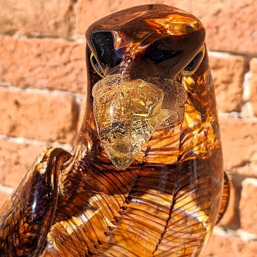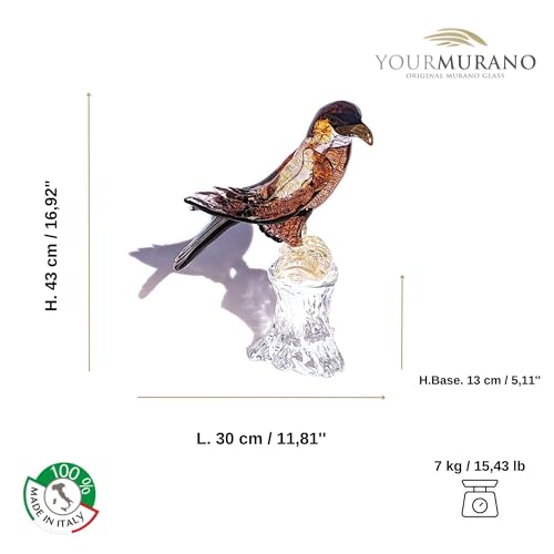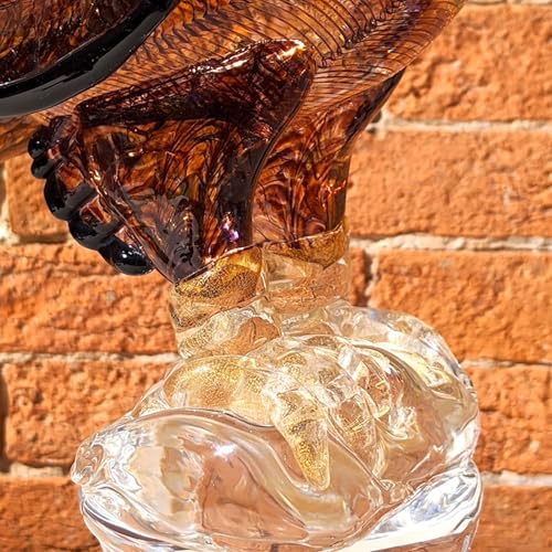 Especificaciones: YourMurano – Escultura de águila de cristal de Murano, figura de animal de cristal soplado, obra de arte de cristal hecha a mano, pájaro de cristal marrón en soporte
