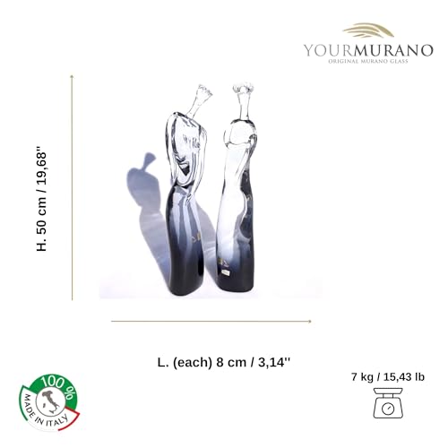 YourMurano – Par de Figuras Humanas de Cristal de Murano en Vidrio y Cristal Azul, Auténtica Pieza de Vidrio Hecha a Mano Firmada por Artista del Vidrio, Esculturas de Lujo para el Hogar